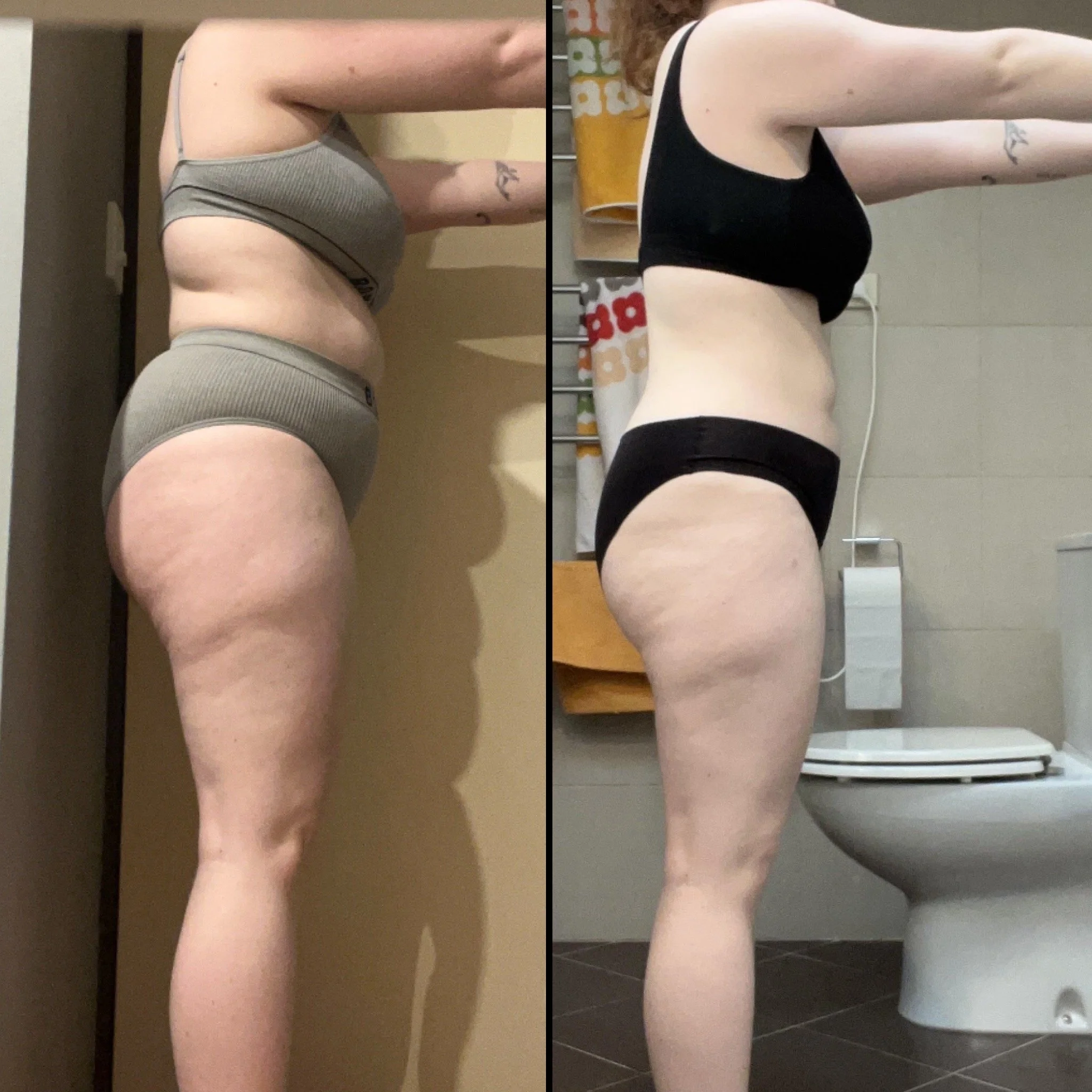 She came to me 4 months postpartum & wanted to start putting herself first again. She was able to get back into her normal gym routine and her clothes started fitting her better.